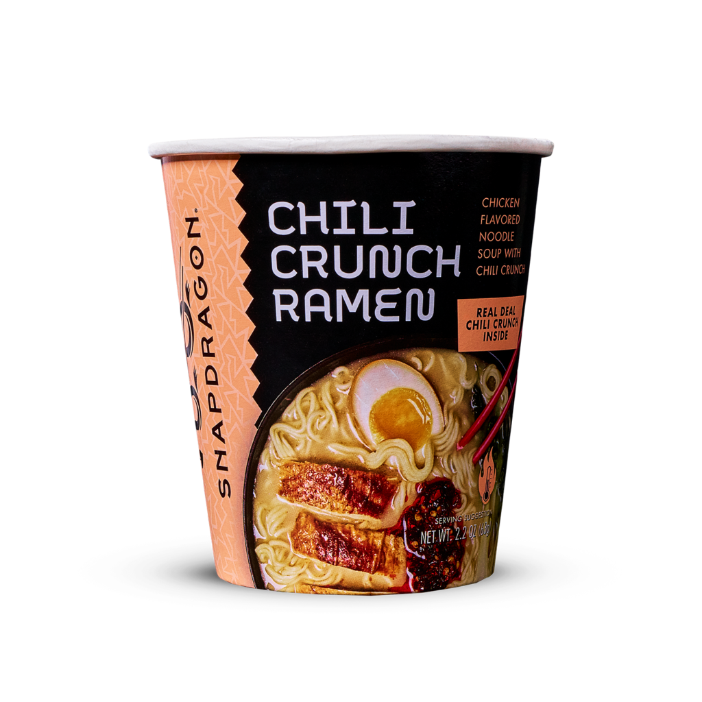 Our latest ramen is flat-out bursting with flavor. Imagine bouncy authentic ramen noodles swimming in a rich, bright chicken-flavored broth infused with warming spices and herbs. Now top that with the garlicky, spicy goodness of our real-deal chili crunch and you have yourself a cup of delicious magic.